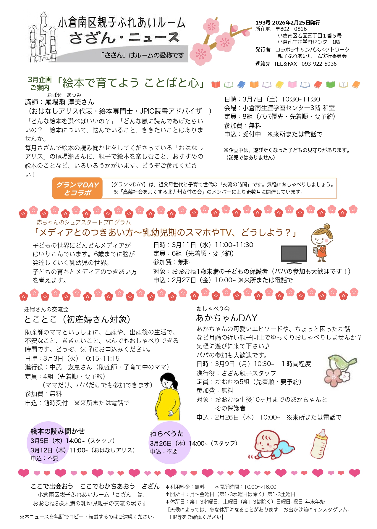 4月号(表) (裏) 5月号(表) (裏) 6月号(表) (裏) 7月号(表) (裏) 8月号(表) (裏) 9月号(表) (裏) 10月号(表) (裏) 11月号(表) (裏) 12月号(表) (裏) 1月号(表) (裏) 2月号(表) (裏) 3月号(表) (裏)★さざんニュースのバックナンバー PDF版★